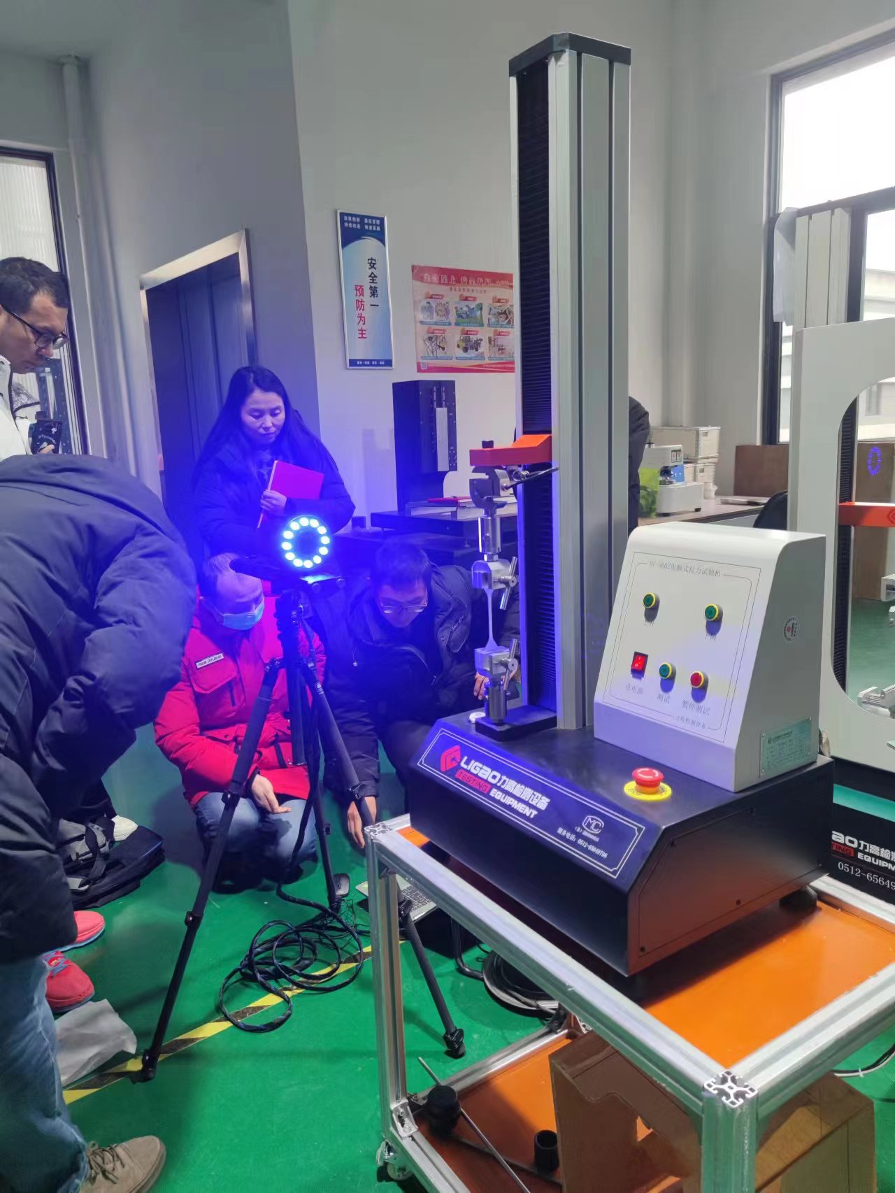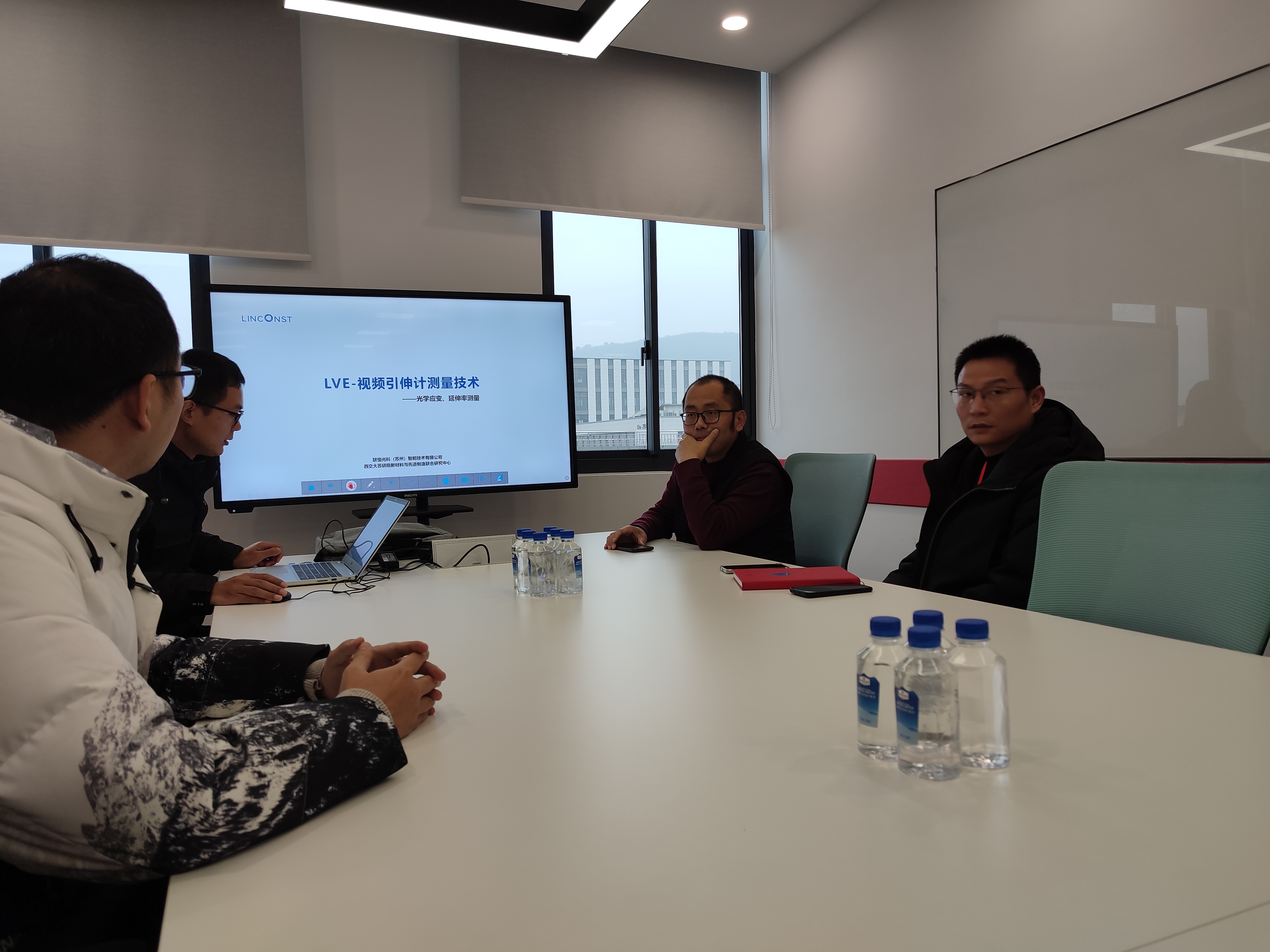 现场展示视频引伸计的操作流程,我们销售及技术团队在认真观摩学习。